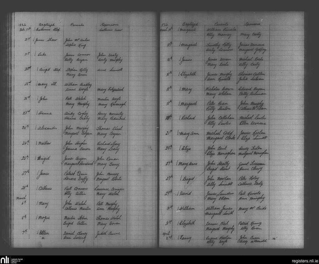 Enniscorthy; County of Wexford; Diocese of Ferns. Baptisms, Feb. 1826 to Apr. 1826