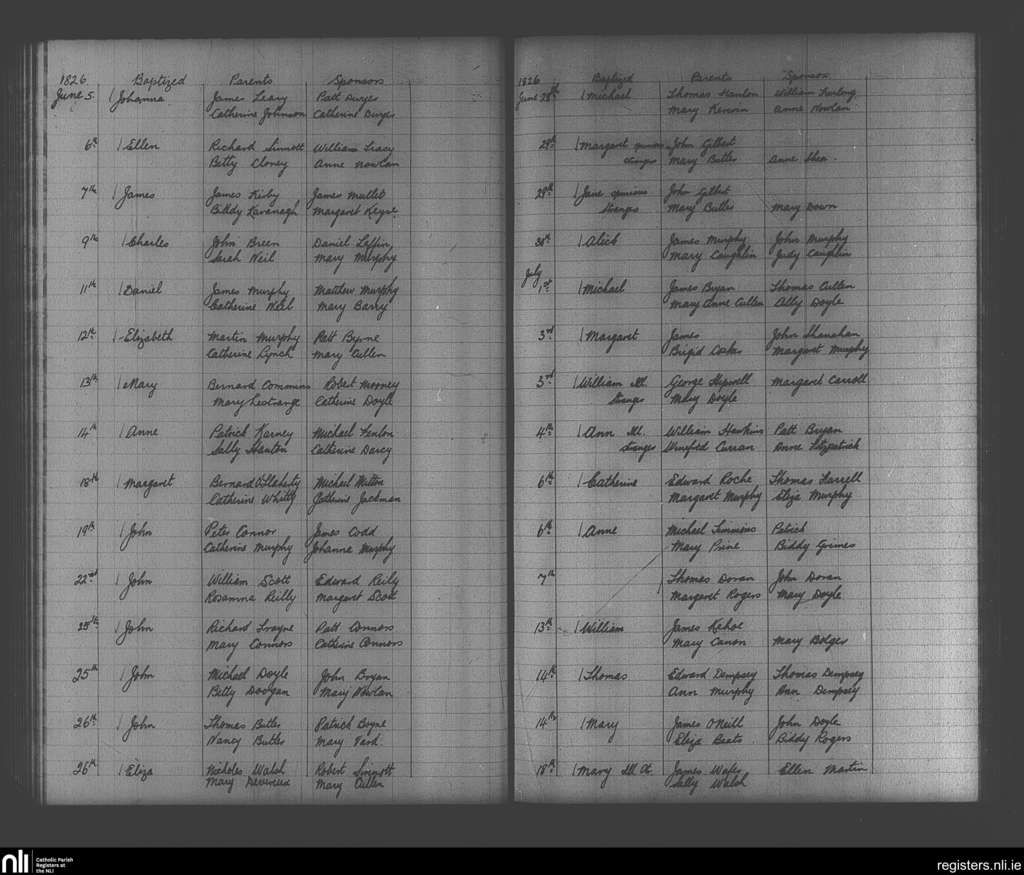 Enniscorthy; County of Wexford; Diocese of Ferns. Baptisms, June 1826 to July 1826