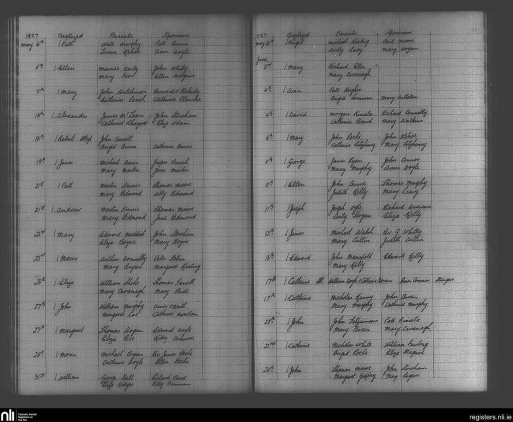 Enniscorthy; County of Wexford; Diocese of Ferns. Baptisms, May 1827 to June 1827