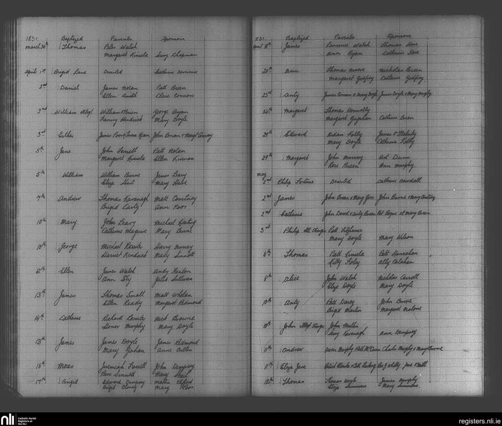Enniscorthy; County of Wexford; Diocese of Ferns. Baptisms, Mar. 1831 to May 1831