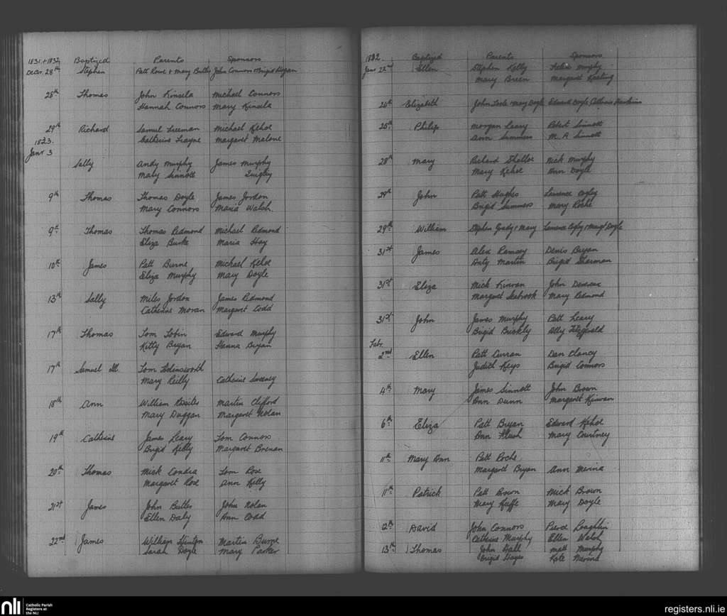 Enniscorthy; County of Wexford; Diocese of Ferns. Baptisms, Dec. 1831 to Feb. 1832