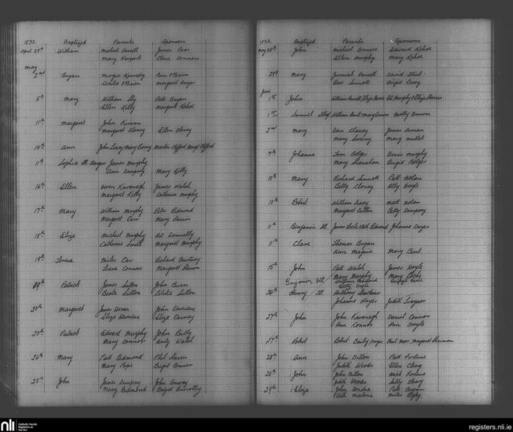 Enniscorthy; County of Wexford; Diocese of Ferns. Baptisms, Apr. 1832 to June 1832
