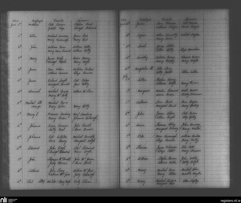 Enniscorthy; County of Wexford; Diocese of Ferns. Baptisms, June 1834 to July 1834