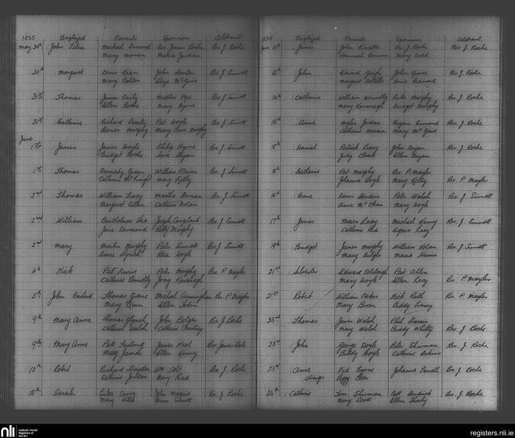 Enniscorthy; County of Wexford; Diocese of Ferns. Baptisms, May 1835 to June 1835