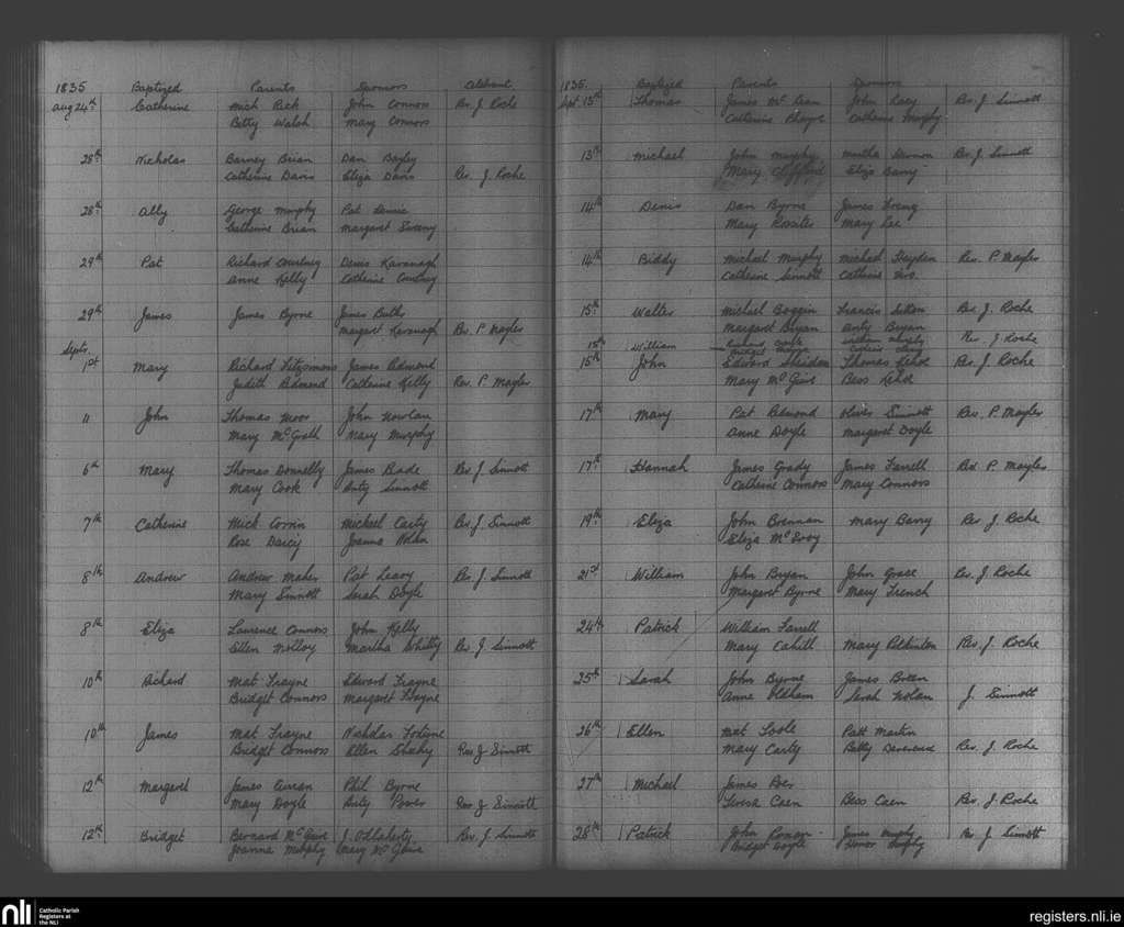 Enniscorthy; County of Wexford; Diocese of Ferns. Baptisms, Aug. 1835 to Sep. 1835