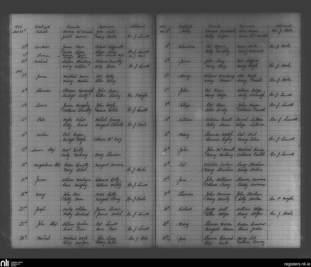 Enniscorthy; County of Wexford; Diocese of Ferns. Baptisms, Sep. 1835 to Nov. 1835