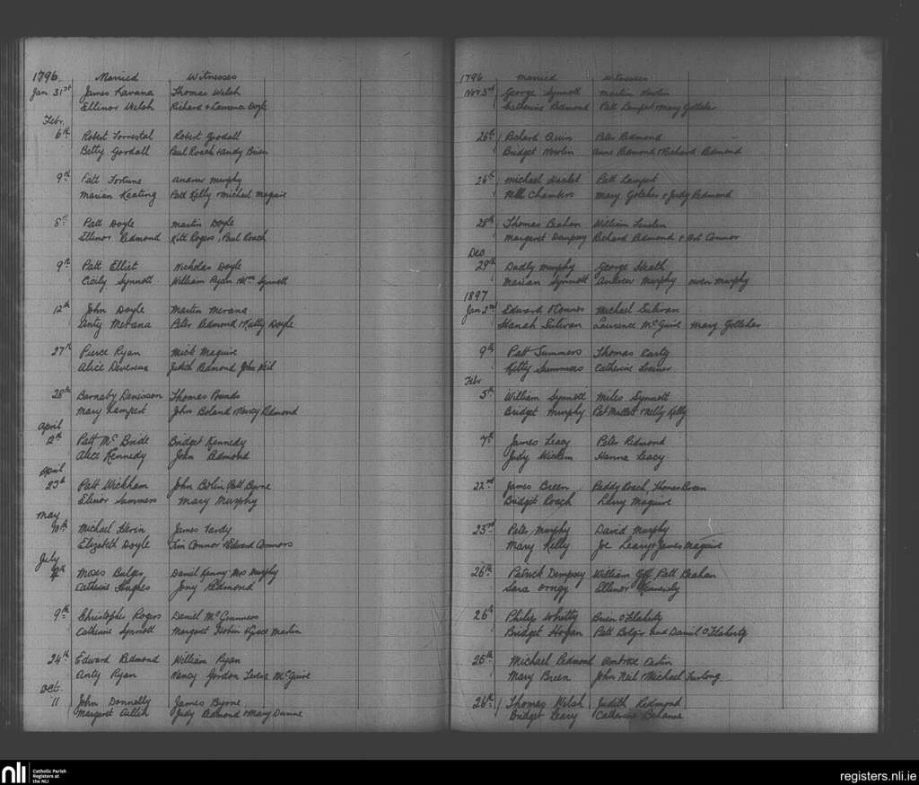 Enniscorthy; County of Wexford; Diocese of Ferns. Marriages, Jan. 1796 to Feb. 1797