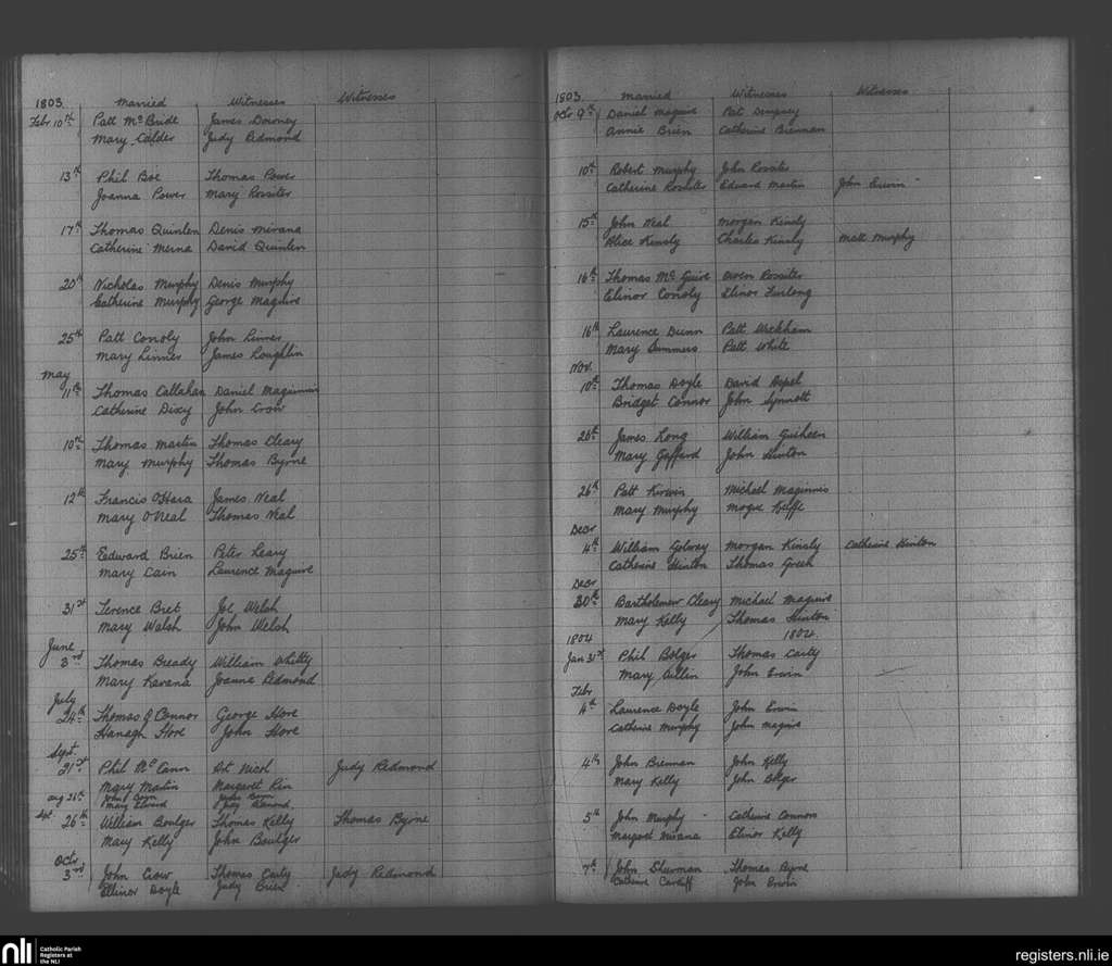 Enniscorthy; County of Wexford; Diocese of Ferns. Marriages, Feb. 1803 to Feb. 1804