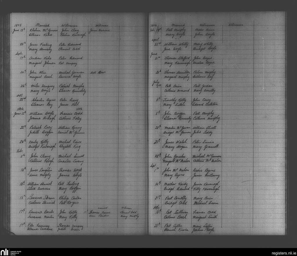 Enniscorthy; County of Wexford; Diocese of Ferns. Marriages, June 1805 to Oct. 1806