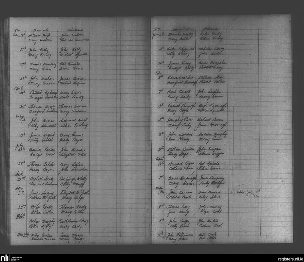Enniscorthy; County of Wexford; Diocese of Ferns. Marriages, Feb. 1816 to May 1817