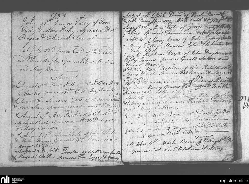 Enniscorthy; County of Wexford; Diocese of Ferns. Baptisms, July 1794 to Oct. 1794