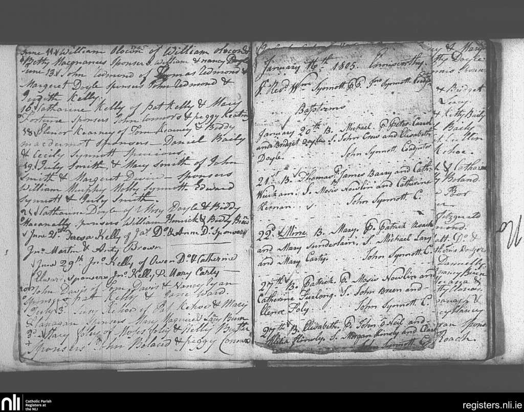 Enniscorthy; County of Wexford; Diocese of Ferns. Baptisms, June 1795 to Jan. 1805