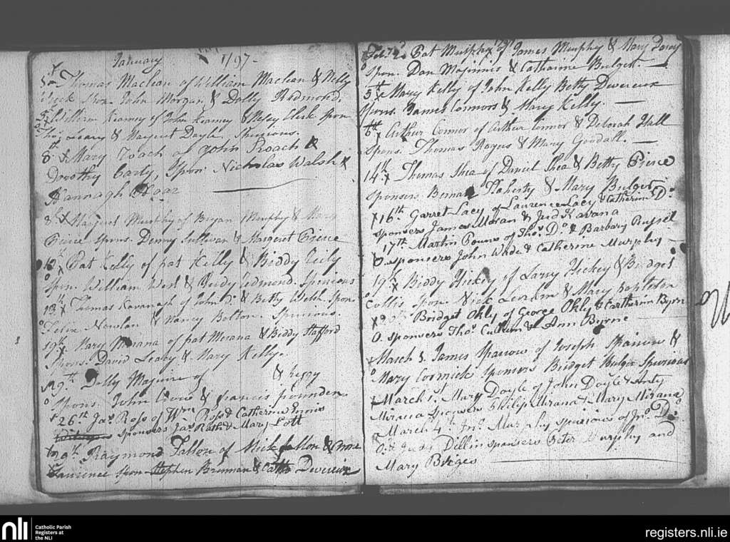 Enniscorthy; County of Wexford; Diocese of Ferns. Baptisms, Jan. 1797 to Mar. 1797