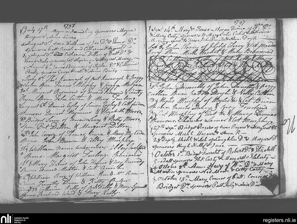 Enniscorthy; County of Wexford; Diocese of Ferns. Baptisms, July 1797 to Oct. 1797