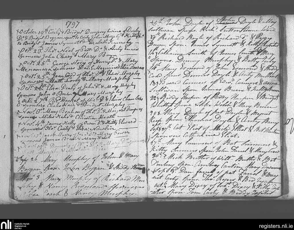 Enniscorthy; County of Wexford; Diocese of Ferns. Baptisms, Oct. 1797 to Nov. 1797