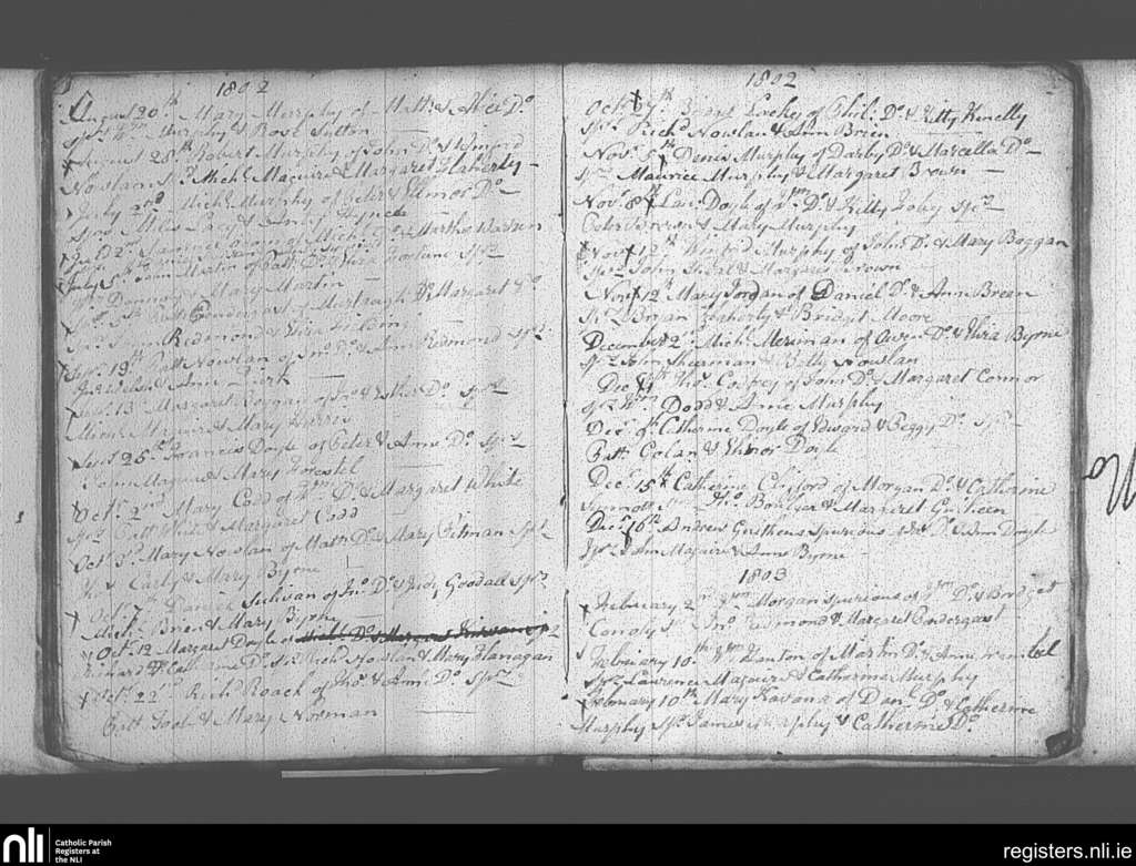 Enniscorthy; County of Wexford; Diocese of Ferns. Baptisms, July 1802 to Feb. 1803