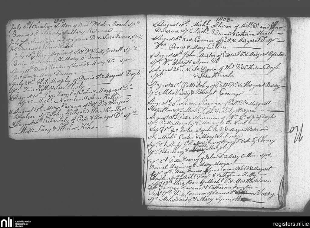 Enniscorthy; County of Wexford; Diocese of Ferns. Baptisms, July 1803 to Sep. 1803