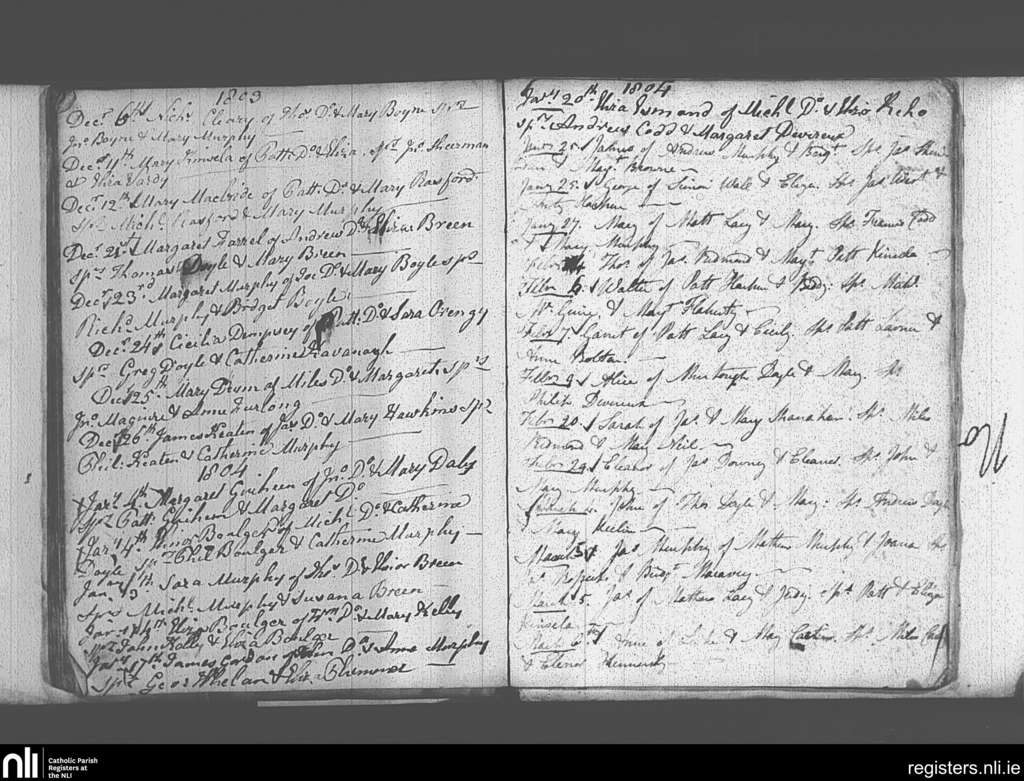 Enniscorthy; County of Wexford; Diocese of Ferns. Baptisms, Dec. 1803 to Mar. 1804