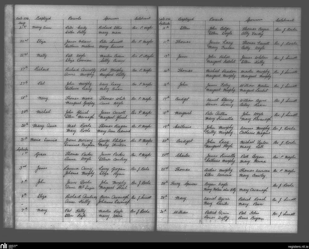 Enniscorthy; County of Wexford; Diocese of Ferns. Baptisms, Aug. 1836 to Sep. 1836
