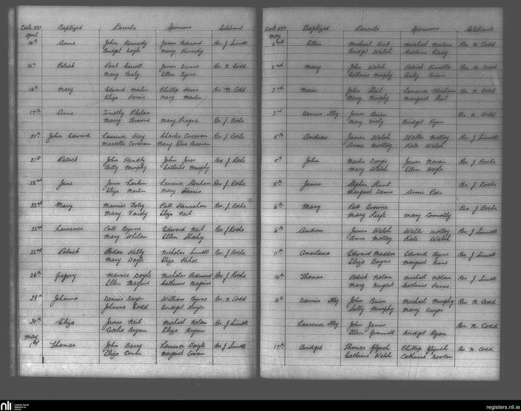 Enniscorthy; County of Wexford; Diocese of Ferns. Baptisms, Apr. 1837 to May 1837