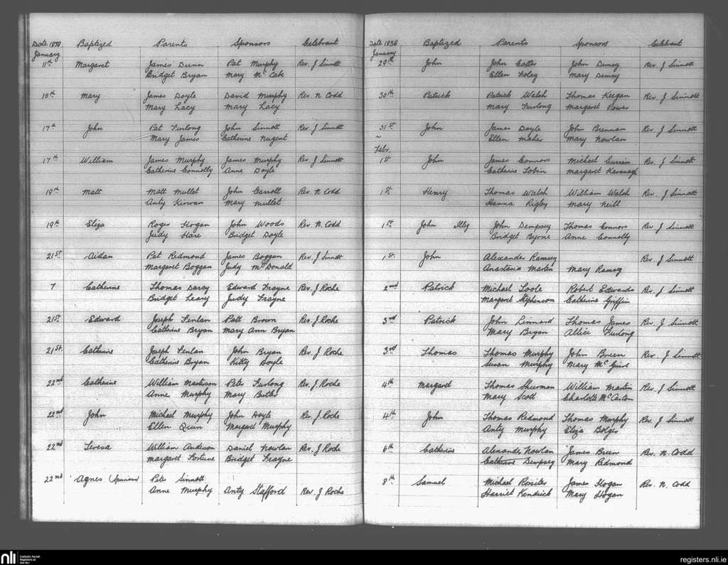 Enniscorthy; County of Wexford; Diocese of Ferns. Baptisms, Jan. 1838 to Feb. 1838
