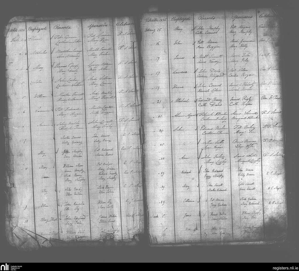 Enniscorthy; County of Wexford; Diocese of Ferns. Baptisms, Feb. 1836 to Mar. 1836