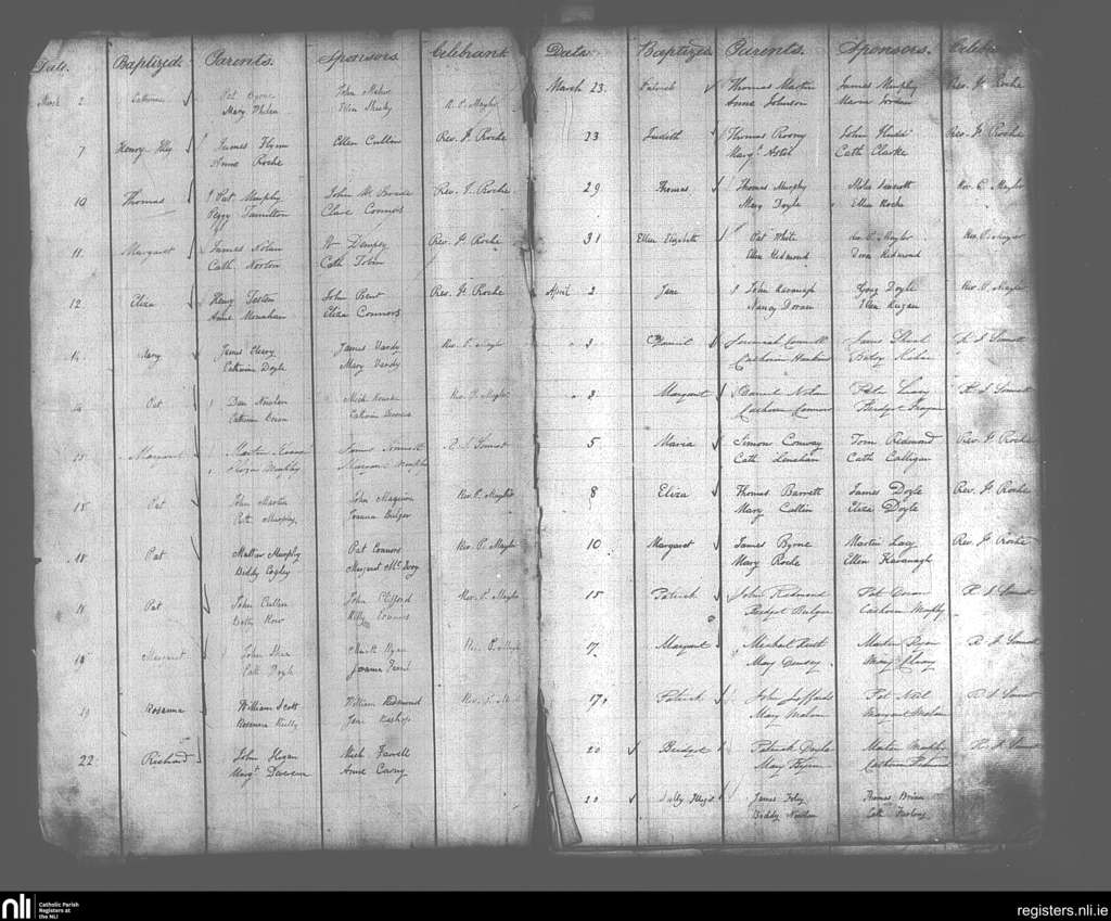 Enniscorthy; County of Wexford; Diocese of Ferns. Baptisms, Mar. 1836 to Apr. 1836