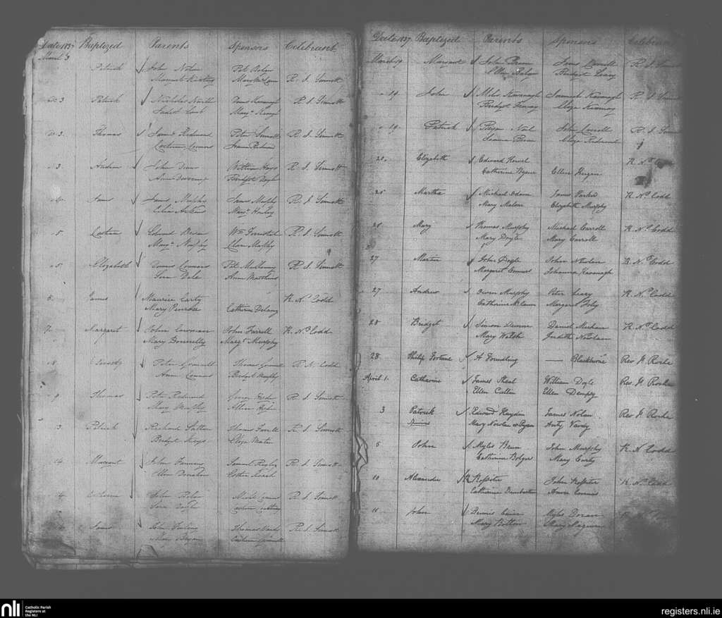 Enniscorthy; County of Wexford; Diocese of Ferns. Baptisms, Mar. 1837 to Apr. 1837