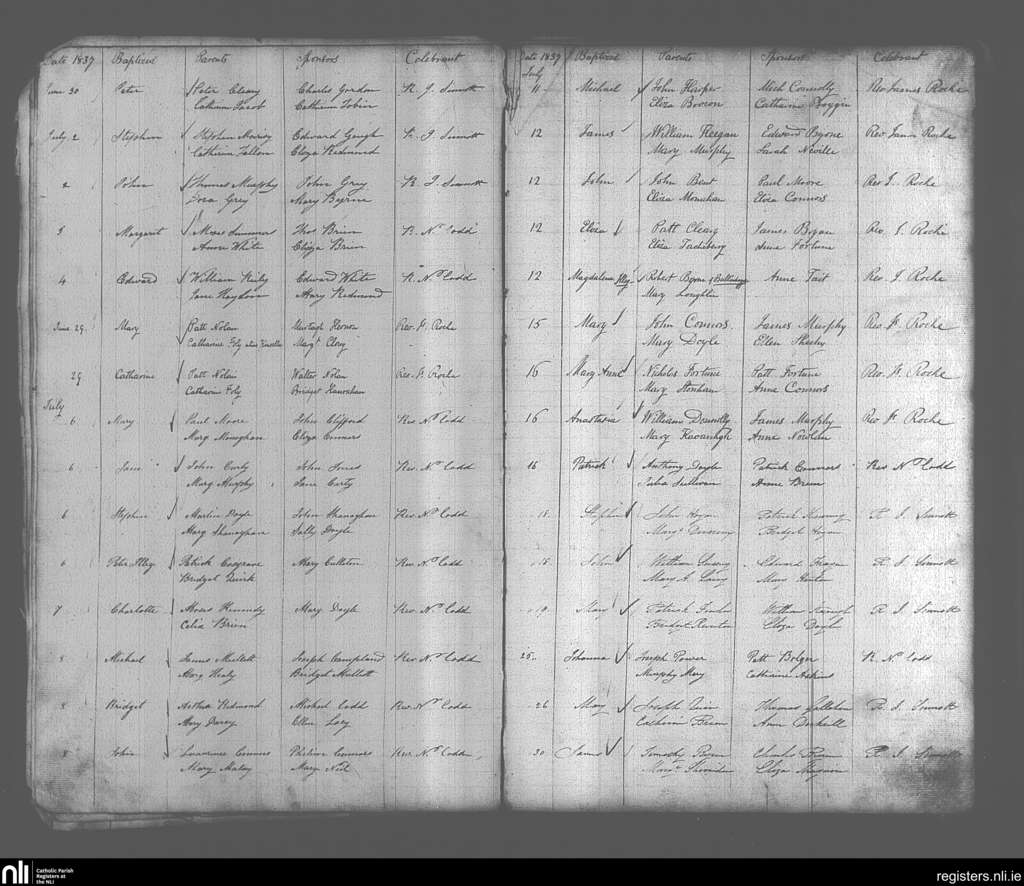 Enniscorthy; County of Wexford; Diocese of Ferns. Baptisms, June 1837 to July 1837