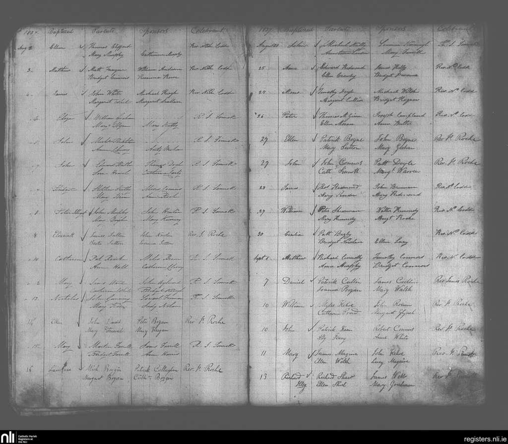 Enniscorthy; County of Wexford; Diocese of Ferns. Baptisms, Aug. 1837 to Sep. 1837