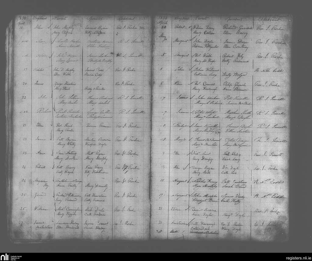 Enniscorthy; County of Wexford; Diocese of Ferns. Baptisms, Apr. 1838 to May 1838