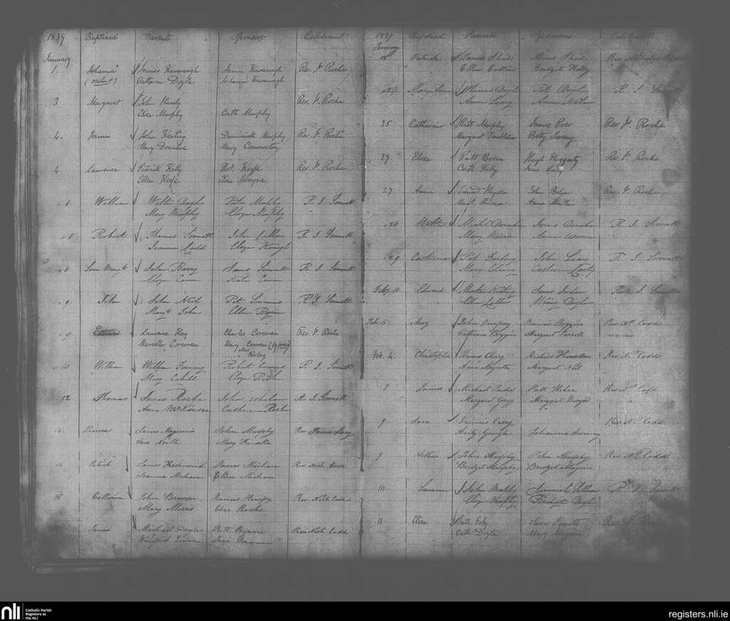 Enniscorthy; County of Wexford; Diocese of Ferns. Baptisms, Jan. 1839 to Feb. 1839