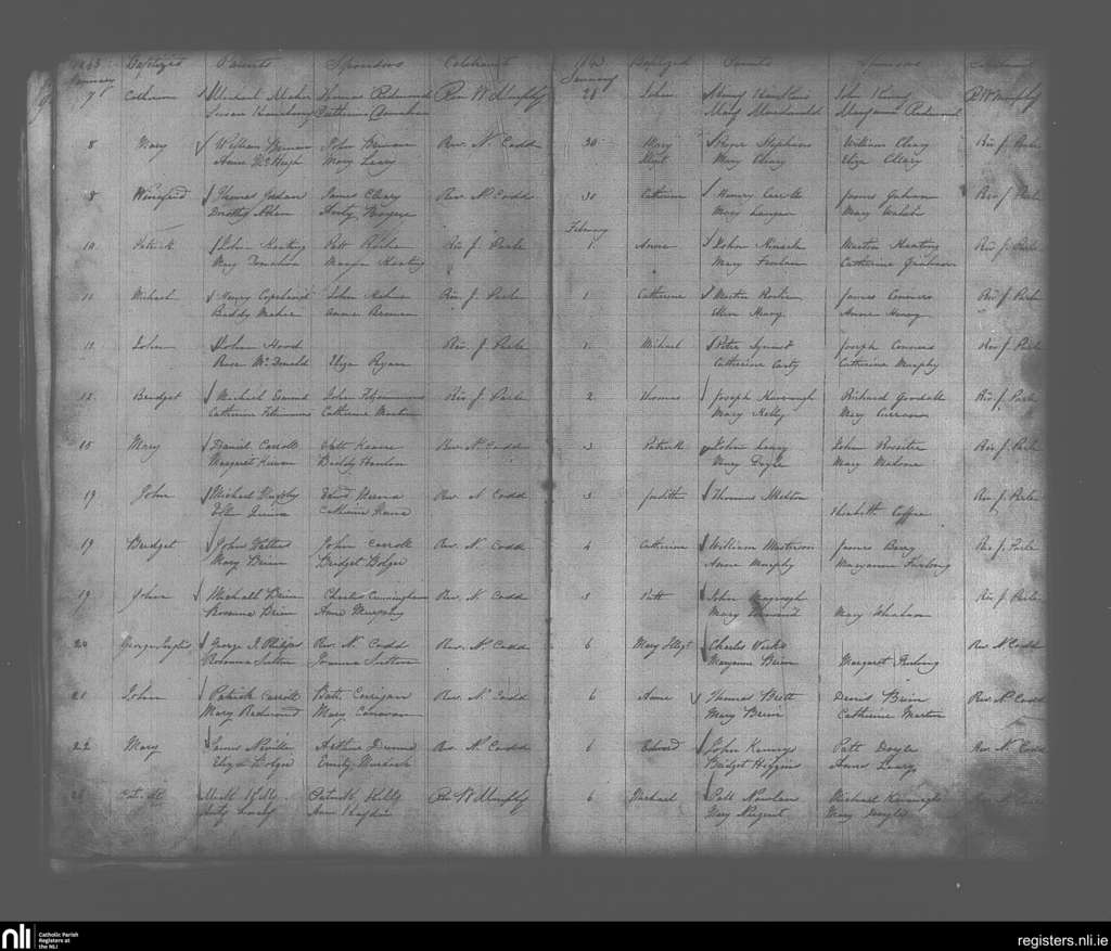 Enniscorthy; County of Wexford; Diocese of Ferns. Baptisms, Jan. 1843 to Feb. 1843