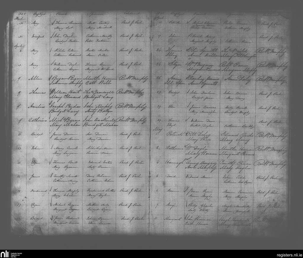 Enniscorthy; County of Wexford; Diocese of Ferns. Baptisms, Mar. 1845 to May 1845