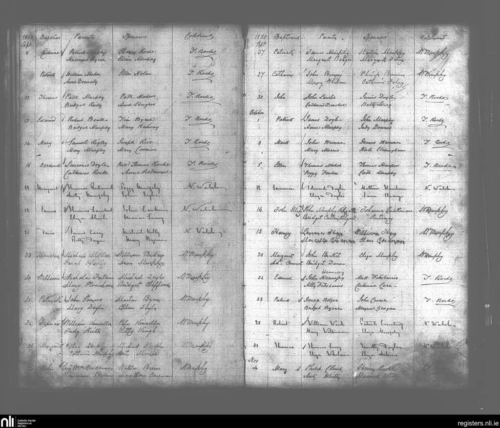 Enniscorthy; County of Wexford; Diocese of Ferns. Baptisms, Sep. 1850 to Nov. 1850