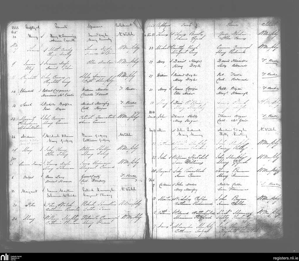 Enniscorthy; County of Wexford; Diocese of Ferns. Baptisms, Oct. 1853 to Feb. 1854