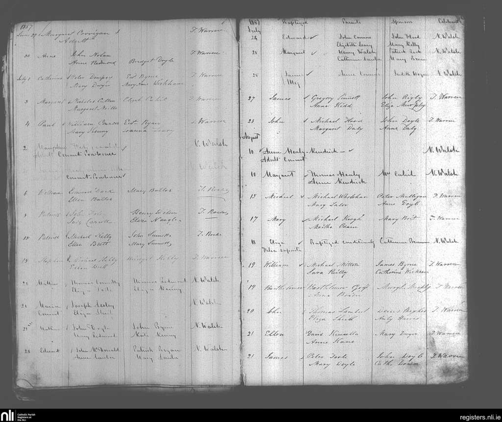Enniscorthy; County of Wexford; Diocese of Ferns. Baptisms, June 1857 to Aug. 1857