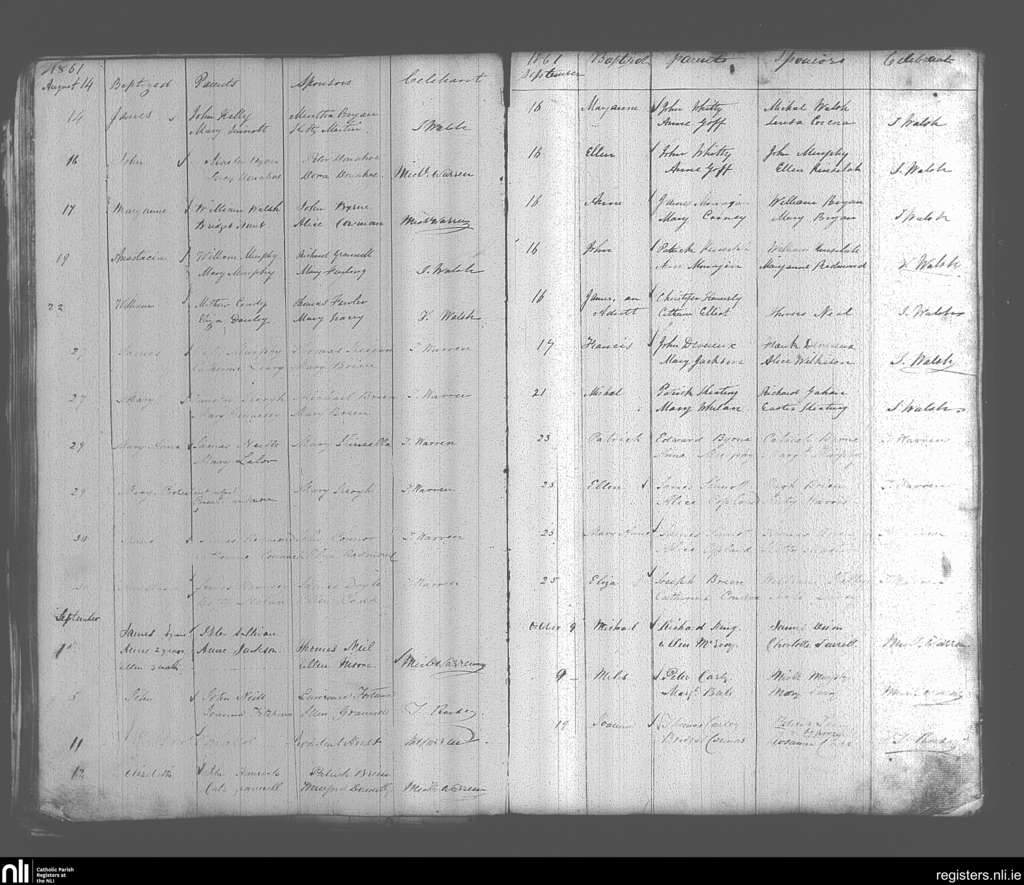 Enniscorthy; County of Wexford; Diocese of Ferns. Baptisms, Aug. 1861 to Oct. 1861