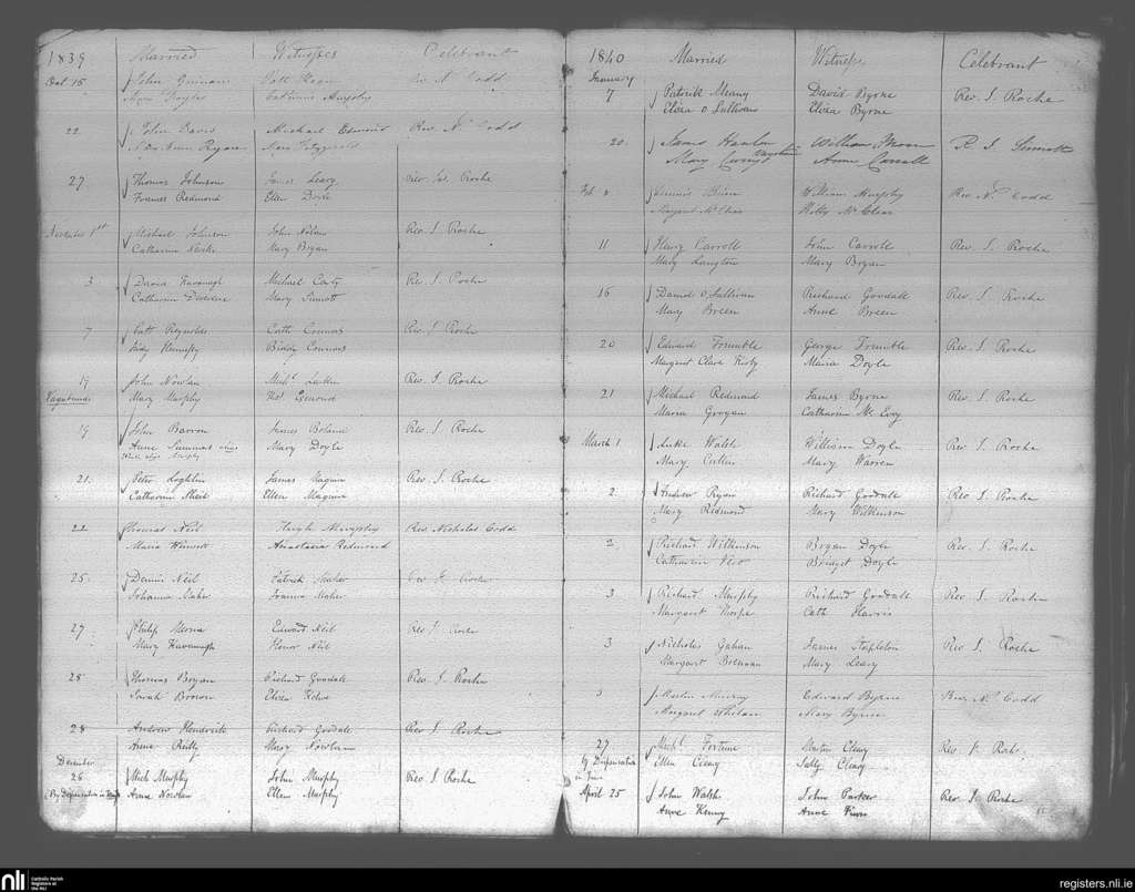 Enniscorthy; County of Wexford; Diocese of Ferns. Marriages, Oct. 1839 to Apr. 1840