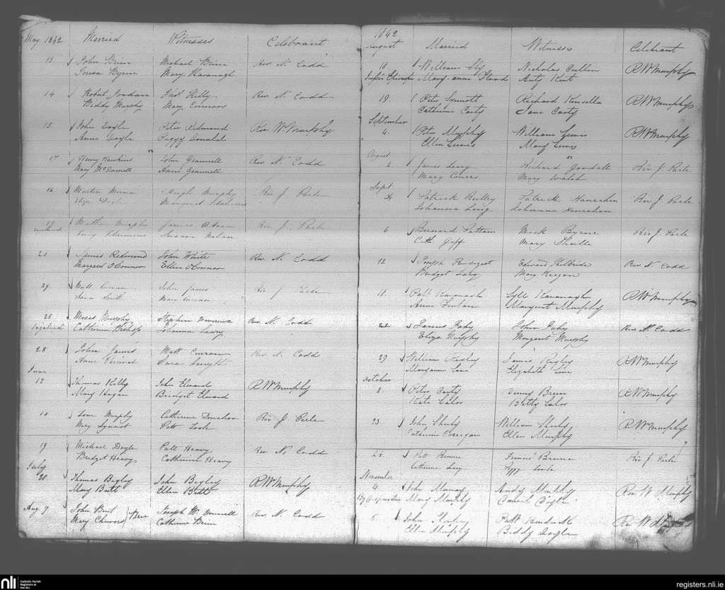 Enniscorthy; County of Wexford; Diocese of Ferns. Marriages, May 1842 to Nov. 1842