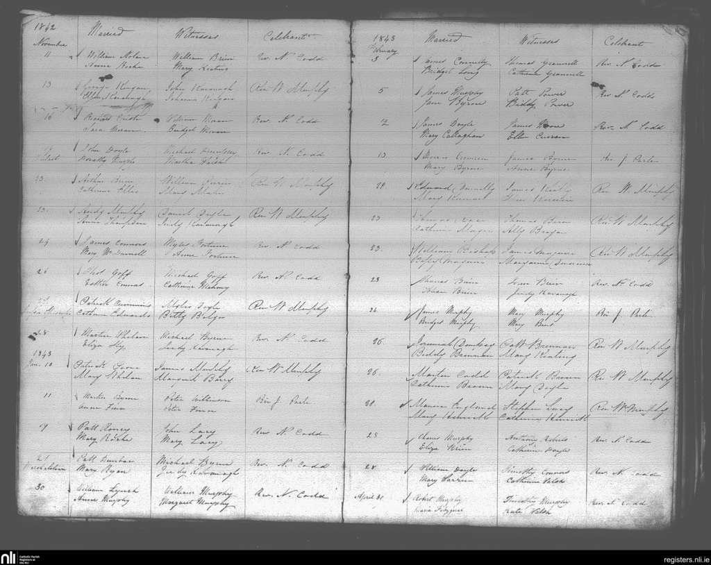 Enniscorthy; County of Wexford; Diocese of Ferns. Marriages, Nov. 1842 to Apr. 1843
