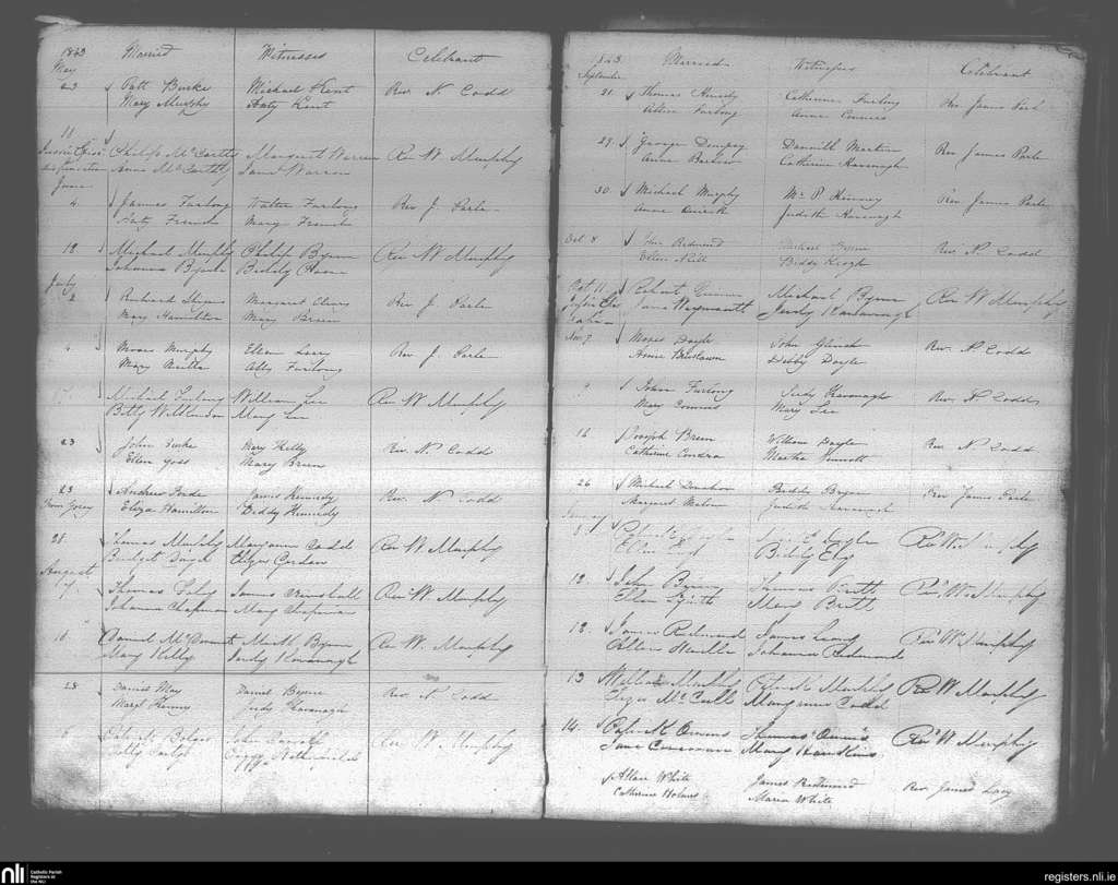 Enniscorthy; County of Wexford; Diocese of Ferns. Marriages, May 1843 to Jan. 1844
