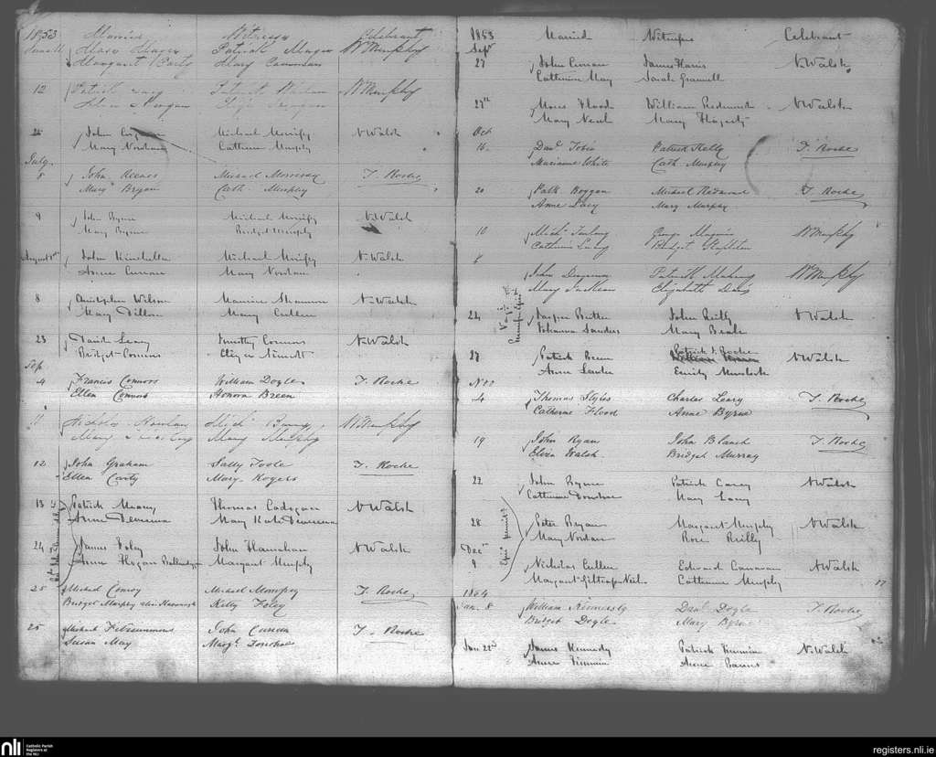 Enniscorthy; County of Wexford; Diocese of Ferns. Marriages, June 1853 to Jan. 1854