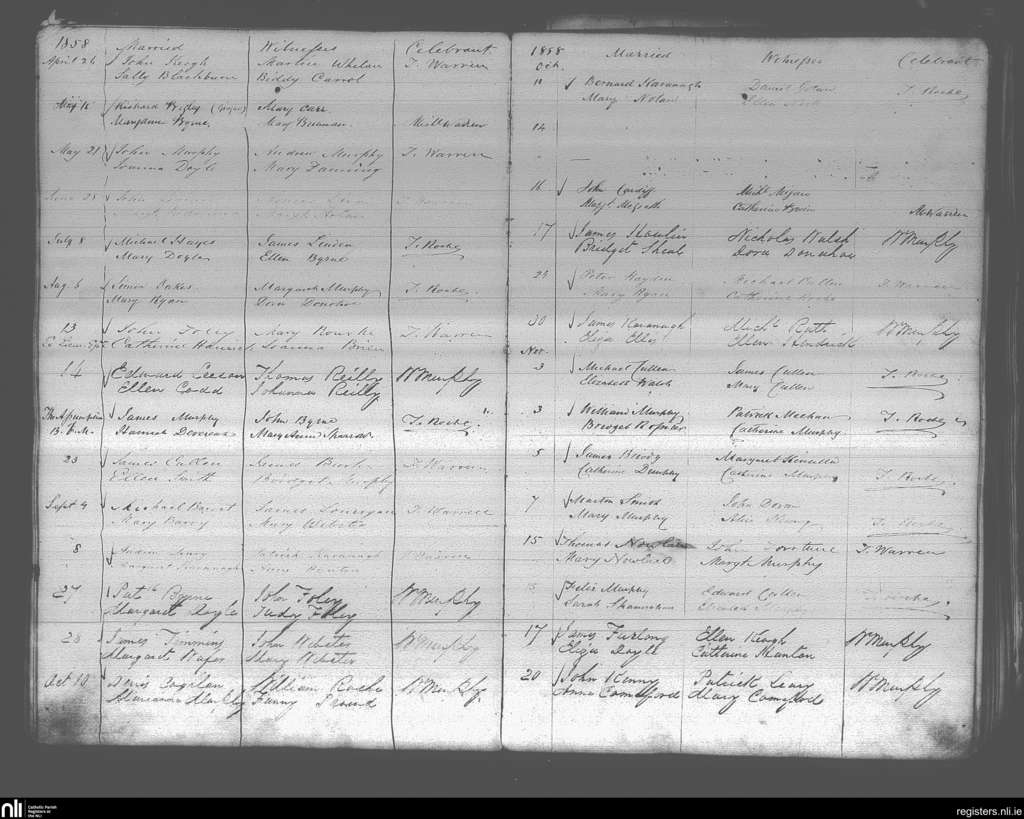 Enniscorthy; County of Wexford; Diocese of Ferns. Marriages, Apr. 1858 to Nov. 1858