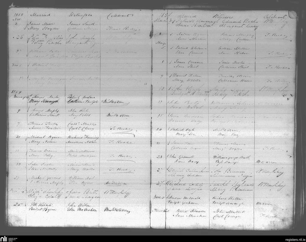 Enniscorthy; County of Wexford; Diocese of Ferns. Marriages, Nov. 1858 to June 1859