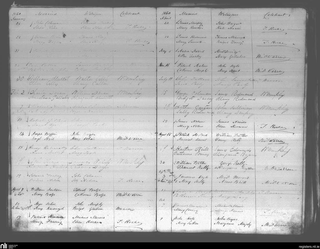 Enniscorthy; County of Wexford; Diocese of Ferns. Marriages, Jan. 1860 to Oct. 1860
