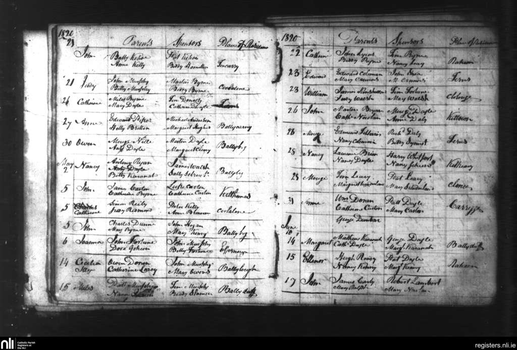 Ferns; County of Wexford; Diocese of Ferns. Baptisms, Apr. 1820 to June 1820