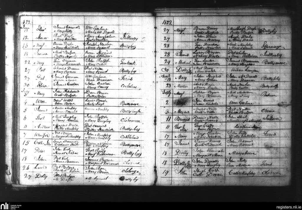 Ferns; County of Wexford; Diocese of Ferns. Baptisms, June 1822 to Sep. 1822
