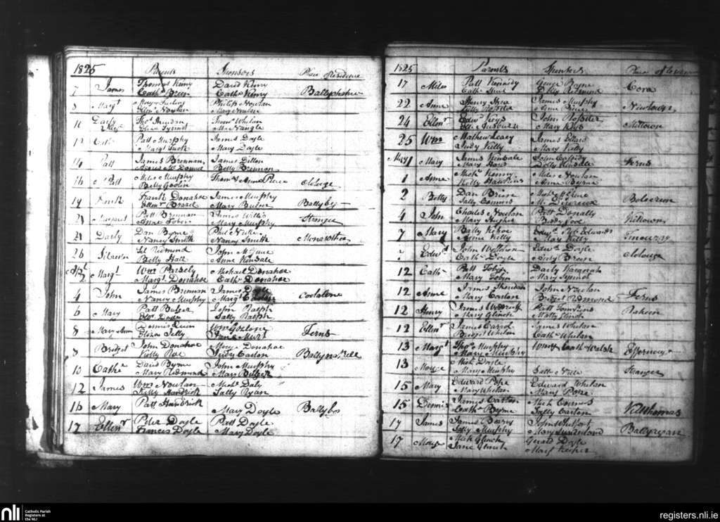 Ferns; County of Wexford; Diocese of Ferns. Baptisms, Mar. 1825 to May 1825