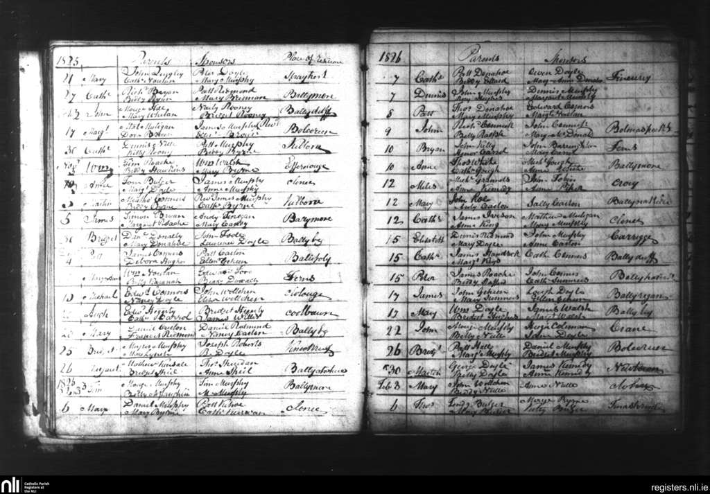 Ferns; County of Wexford; Diocese of Ferns. Baptisms, Sep. 1825 to Feb. 1826